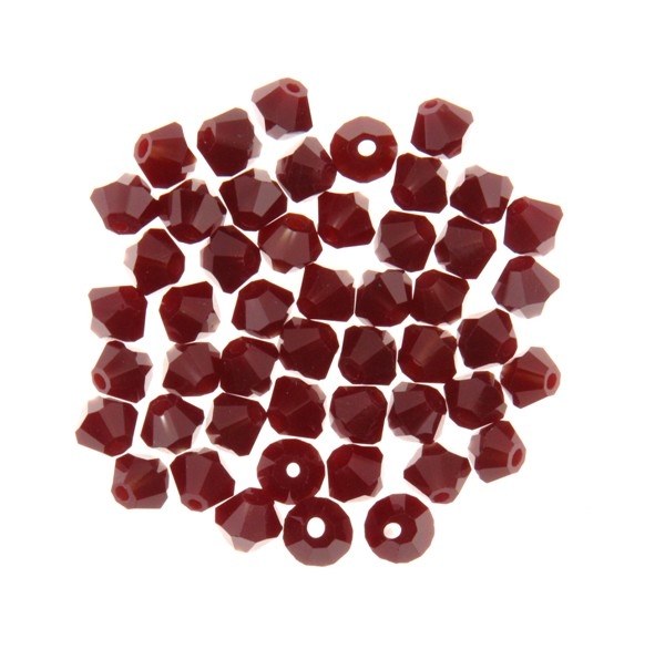 3mm Bonarski Crystal Bicone Colour 349 Deep Red. Pack of 50. These Crystals are a superiour quality and are an excelent alternative to Swarovski