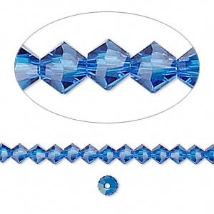 Swarovski 5mm Crystal Bicone Blue Capri. Bag of 24. Swarovski crystal components are made in Austria and are considered the finest products of their kind in the world.