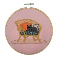 Embroidery kit with hoop. Kit Includes: Kit Includes: 15cm bamboo hoop; 6 stranded embroidery threads; 1 x metal embroidery needle; 25 x 25cm cotton fabric with pre-printed design; felt backing and full colour instruction sheet. Approximate finished size: (diam) 15cm or 6in. Do not dry clean. Handwash in cold or warm water. Use mild detergent.