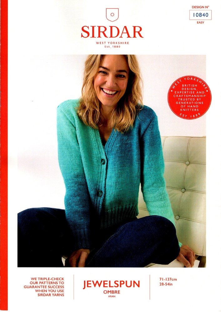 Sirdar 10840 V Nice V Neck Cardigan in Jewelspun Ombre Aran 28 in - 54 in chest