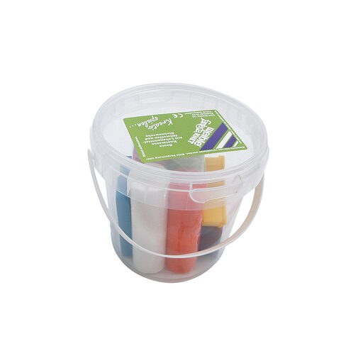 Modelling Clay Bucket 10 play dough sticks in assorted colors with 4 molds. Bright and flexible, this play dough is easy to use. It won't dry out and is easily reusable. Origine Germany
