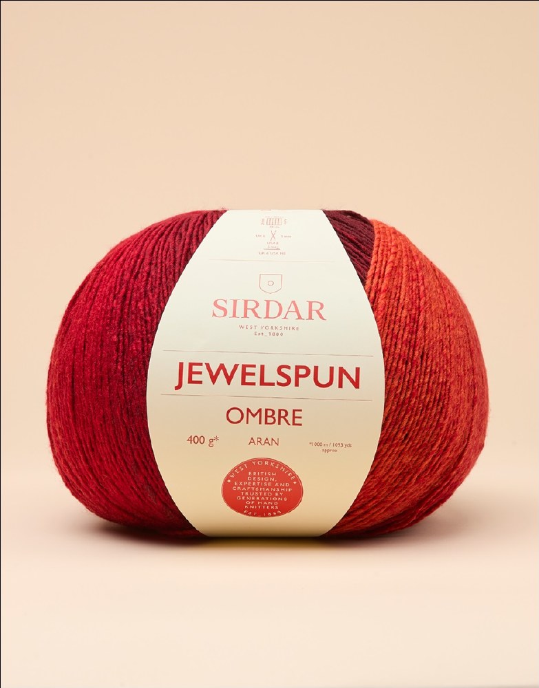 Sirdar Jewelspun Ombre 400g/1000m 100% acrylic Rec needles 5mm Not just another self-striping yarn A real innovation in colour-effects, ombre is the subtle blending of one shade into another. 108 Sultry Sundown
