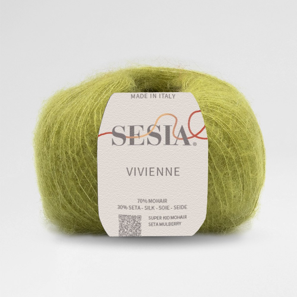 Sesia Vivienne 25g/210m 70% Mohair / 30% silk. Rec needles 2.5-3.5mm Beautiful natural yarns made in Italy in a sustainable way 1820 Pistachio