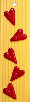 Incomp Buttons L200. Long red hearts x 5 2cm x 3.1cm approx